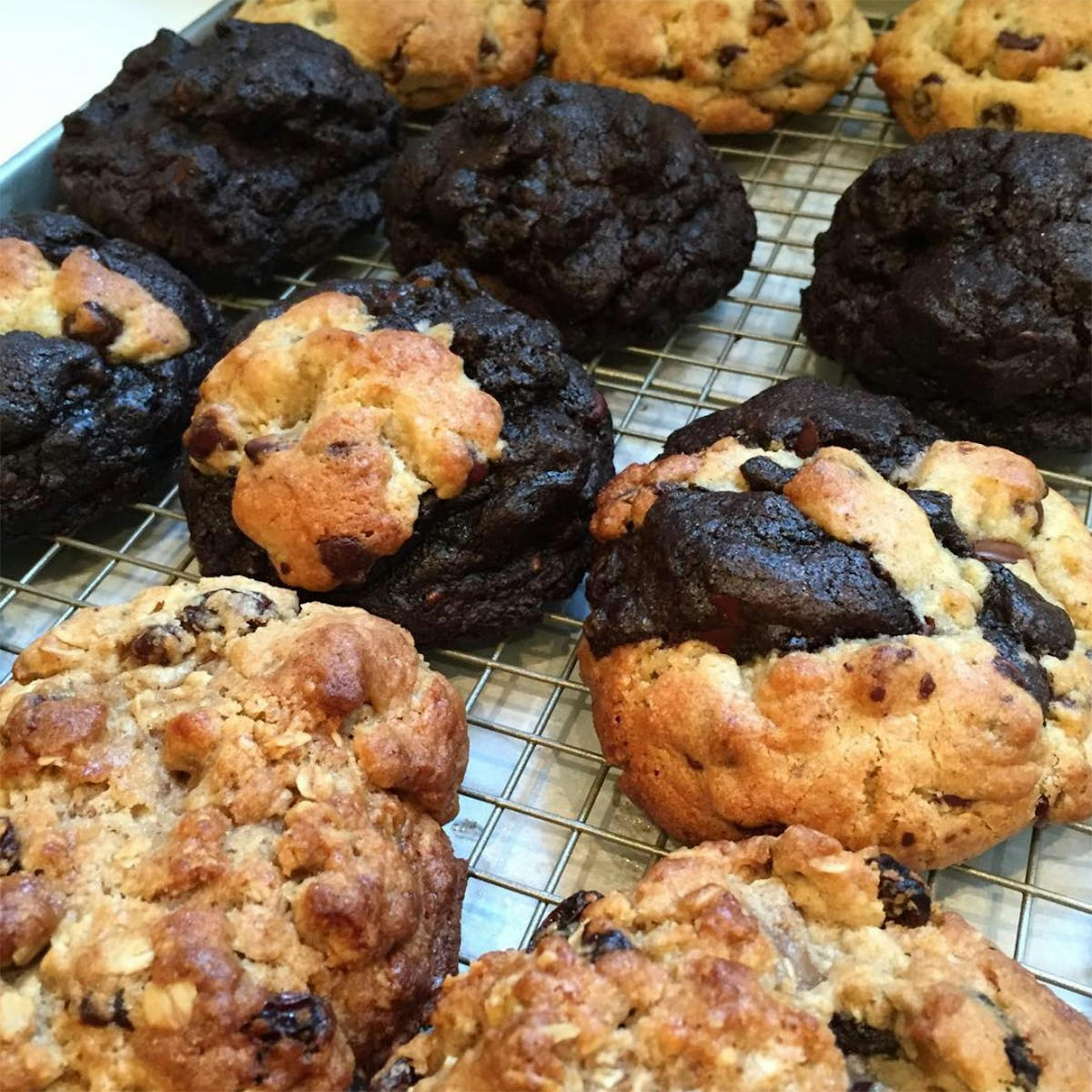 The Best Seller GIANT Cookies is a celebration of the world’s four favorite cookie flavors. These babies are monuments to the pillars of cookie-dom: Oatmeal Raisin, Chocolate Chip, Triple Chocolate, and 50/50 Mixed.