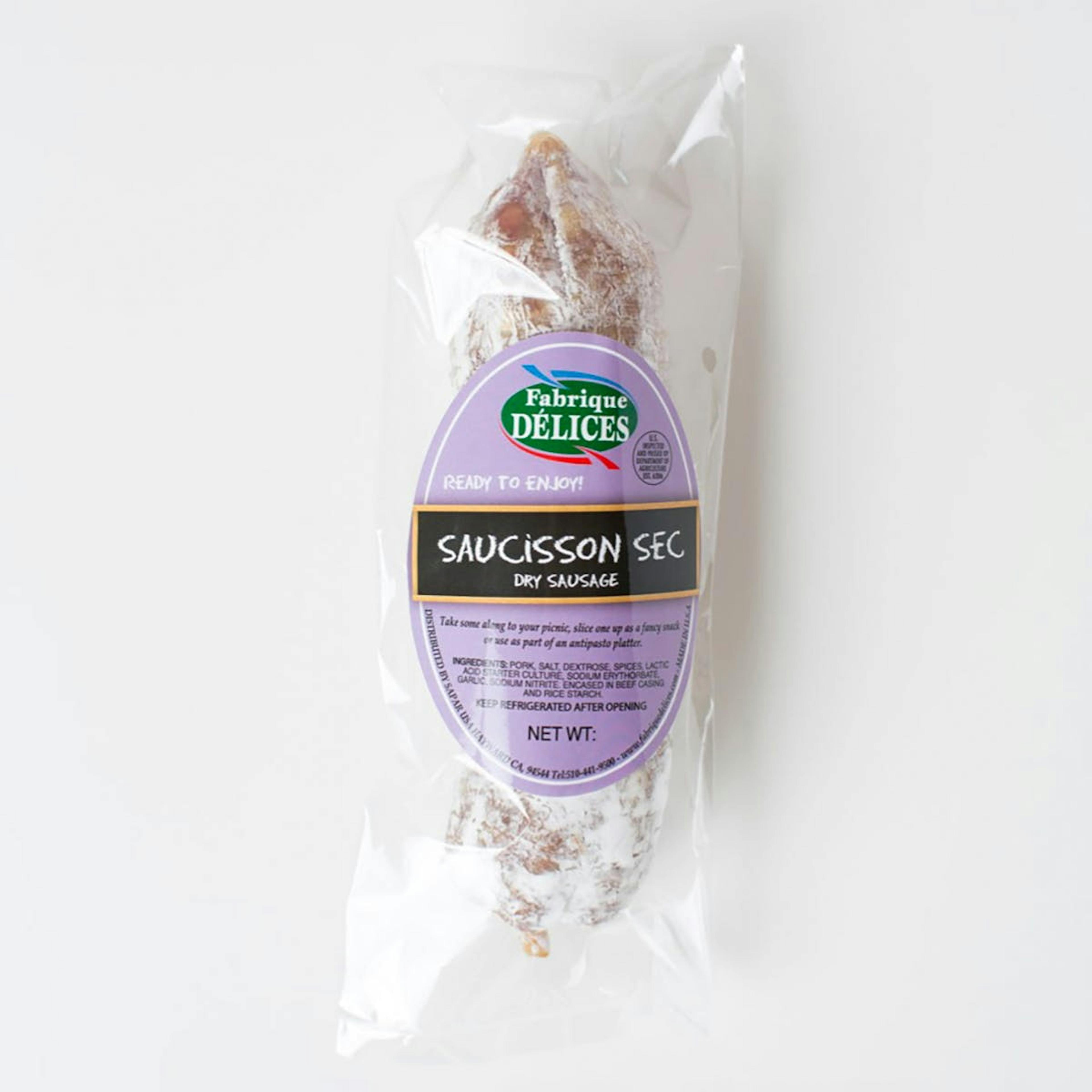 - Saucisson Sec Salami (11 oz): This rich, flavorful French Saucisson Sec has an excellent balance of seasoning and flavor. The pork meat is blended with fresh garlic, sea salt, and black peppercorn in an all natural beef casing, cured 30 days, and then hand-tied.