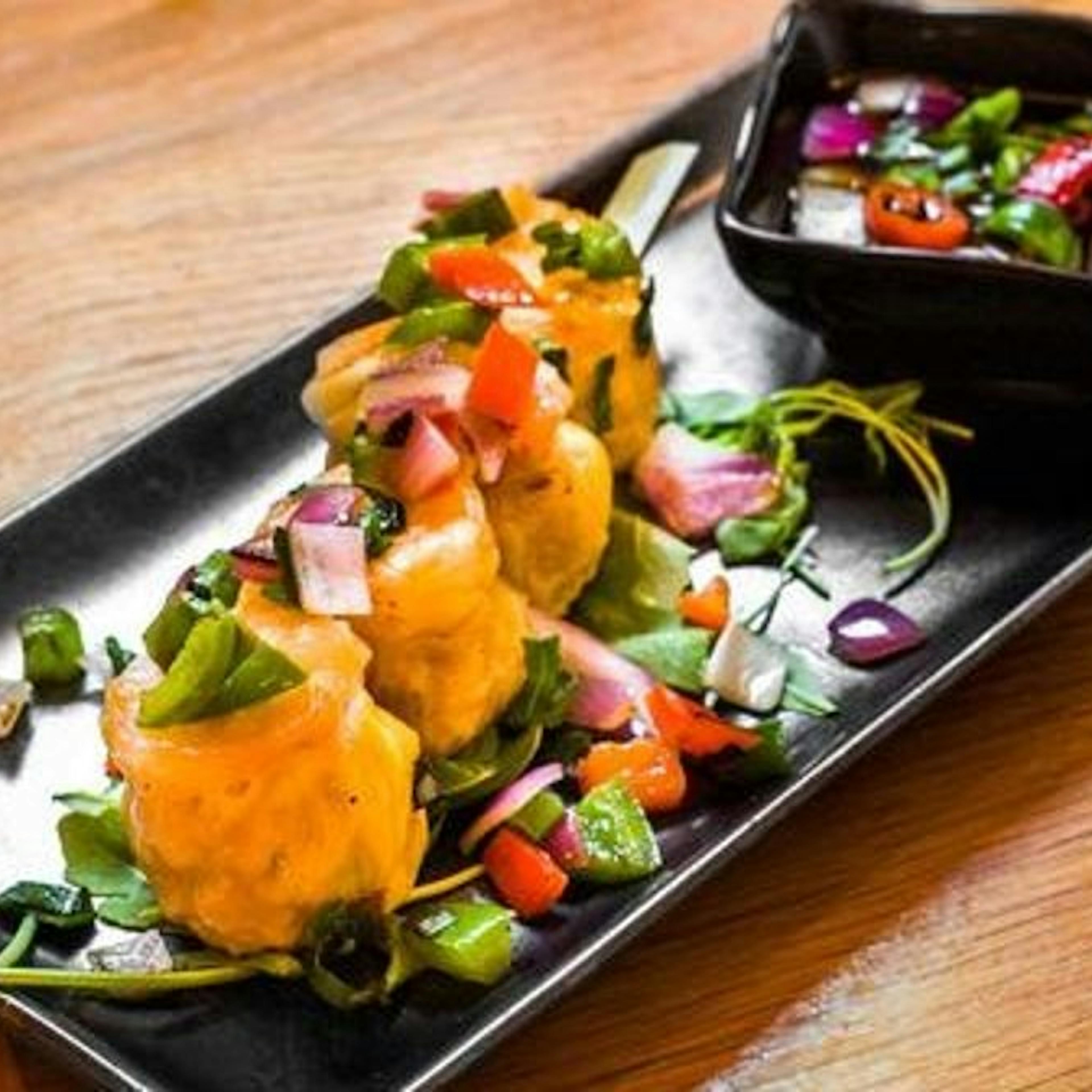 Try all of RedFarm’s greatest hits! This sampler platter includes your choice of dumplings, pastrami egg rolls, and pork buns, with sauces on the side!